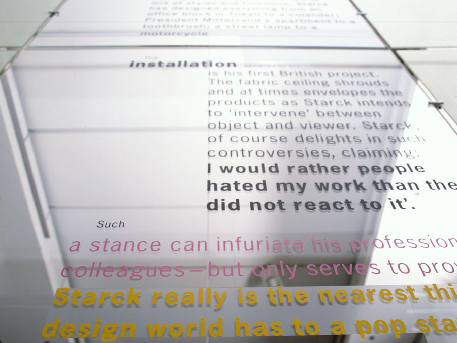 Exhibition graphics and marketing materials for retrospective exhibition of french industrial designer Philippe Starck.
